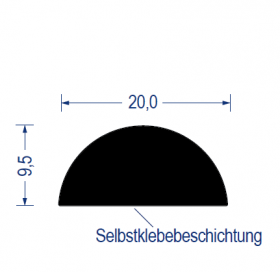 EPDM Moosgummi-Halbrundprofil, 20x9,5 mm, schwarz, *selbstklebend