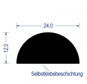EPDM Moosgummi-Halbrundprofil, 24x12 mm, schwarz, *selbstklebend