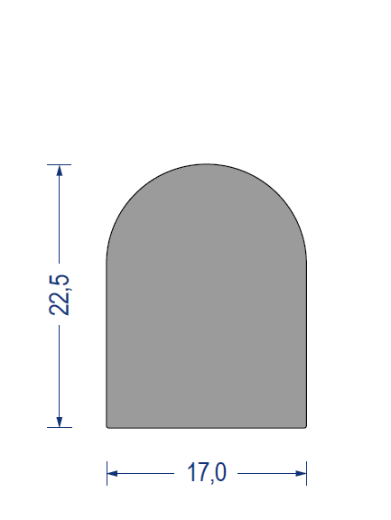cr, moosgummi, halbrundprofil, 17x22,5mm, grau, artikelnummer 2110039