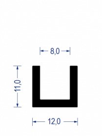 Sortiment Profile Gummi-Profile aus Vollgummi U-Profile Gummi U-Profil, KB 8 mm, 12x11 mm, EPDM 65° Sh.A., schwarz
