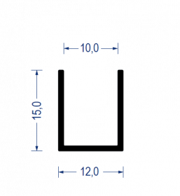 Sortiment Profile Gummi-Profile aus Vollgummi U-Profile Gummi U-Profil, KB 10 mm, 12x15 mm, EPDM 65° Sh.A., schwarz