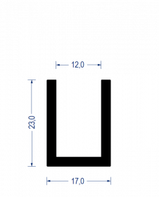 Sortiment Profile Gummi-Profile aus Vollgummi U-Profile Gummi U-Profil, KB 12 mm, 17x23 mm, EPDM 65° Sh.A., schwarz