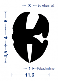 Gummi-Klemmprofil Scheibe 3 mm Falz 1 mm Steg 4 mm