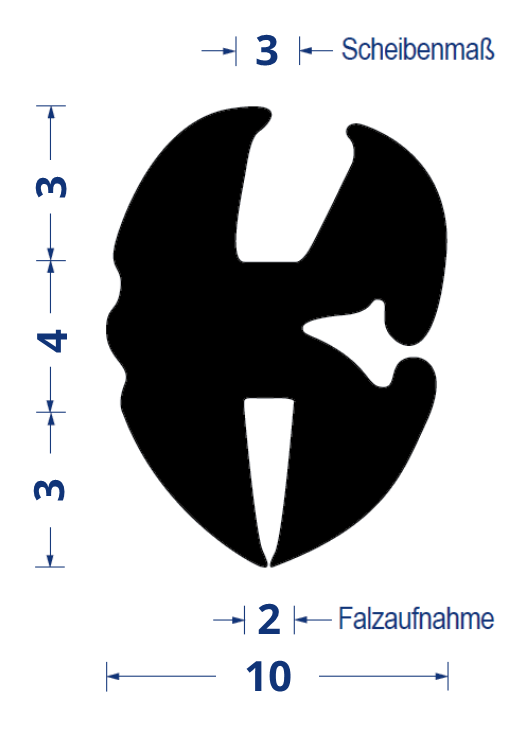 Gummi-Verglasungsprofil Scheibe 3 mm Falz 1 mm Steg 4 mm