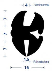 Gummi-Klemmprofil Scheibe 4 mm Falz 1,5 mm Steg 7 mm