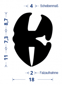 Gummi-Verglasungsprofil Scheibe 4 mm Falz 2 mm Steg 7,3 mm