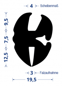 Gummi-Klemmprofil Scheibe 4 mm Falz 3 mm Steg 7,5 mm