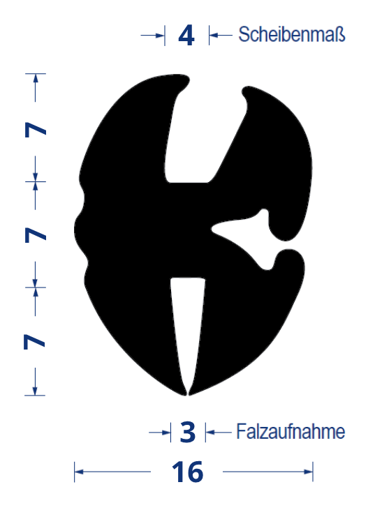 Gummi-Verglasungsprofil Scheibe 4 mm Falz 3 mm Steg 7 mm