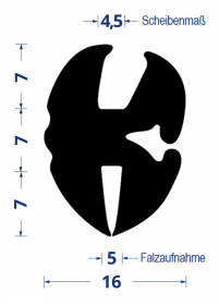 Gummi-Verglasungsprofil Scheibe 4,5 mm Falz 5 mm Steg 7 mm