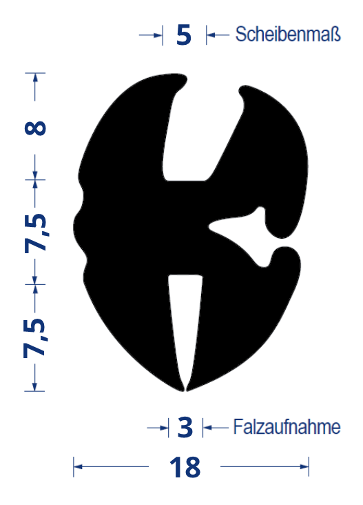 Gummi-Verglasungsprofil Scheibe 5 mm Falz 3 mm Steg 7,5 mm