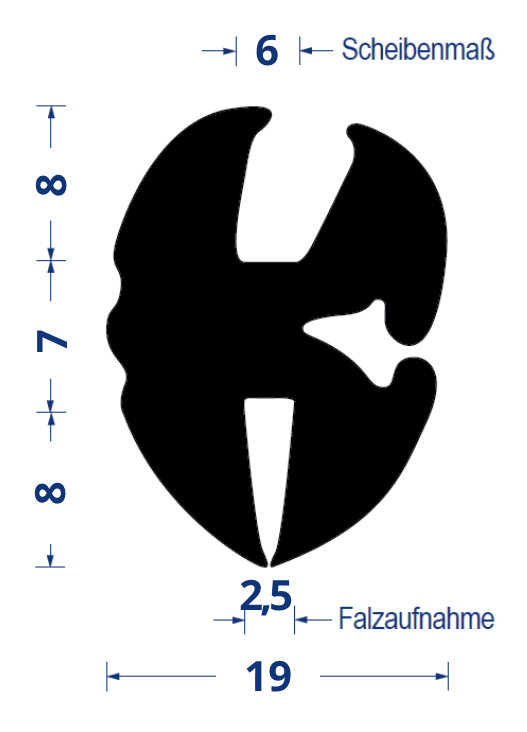 Gummi-Klemmprofil Scheibe 6 mm Falz 2,5 mm Steg 7 mm