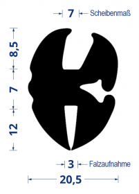 Gummi-Verglasungsprofil Scheibe 7 mm Falz 3 mm Steg 7 mm