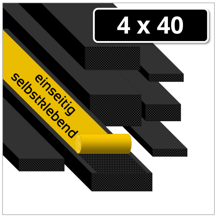 EPDM Moosgummi- Rechtkantprofil- Rechteckprofil- Vierkantprofil, 4x40 mm, schwarz (*optional selbstklebend)