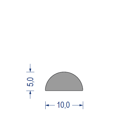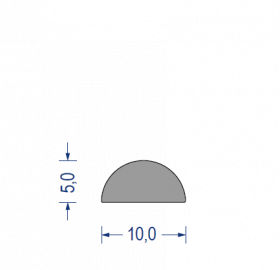 EPDM Moosgummi-Halbrundprofil, 10x5 mm, grau