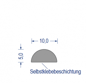 Sortiment Profile Moosgummi Profile │ geschäumt mit Haut Moosgummi Halbrundprofil ohne Hohlkammer EPDM Moosgummi-Halbrundprofil, 10x5 mm, grau, selbstklebend