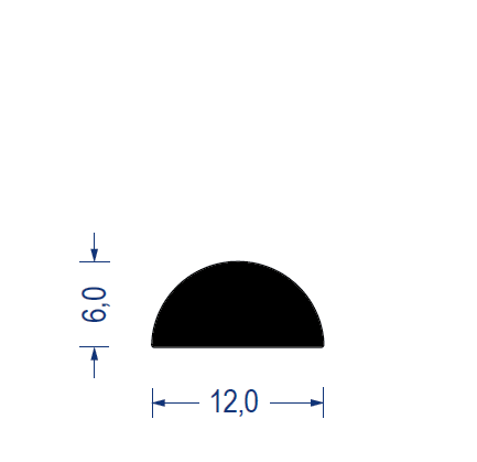 EPDM Moosgummi-Halbrundprofil, 12x6 mm, schwarz