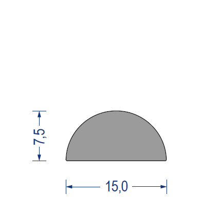 EPDM Moosgummi-Halbrundprofil, 15x7,5 mm, grau