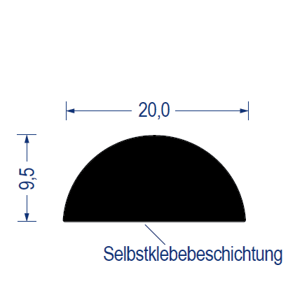 EPDM Moosgummi-Halbrundprofil, 20x9,5 mm, schwarz, *selbstklebend