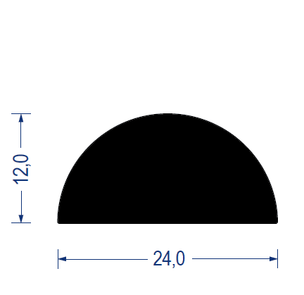 EPDM Moosgummi-Halbrundprofil, 24x12 mm, schwarz