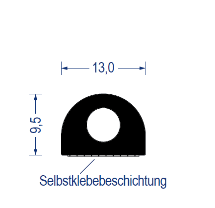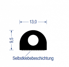 EPDM Moosgummi-Halbrundprofil mit Hohlkammer, 13x9,5 mm, schwarz, *selbstklebend