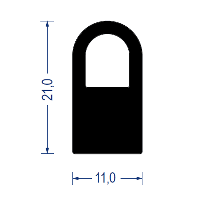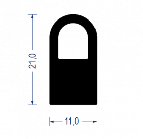 moosgummi, halbrundprofil mit hohlkammer, 11x21mm, schwarz, artikelnummer 2110009