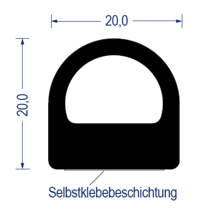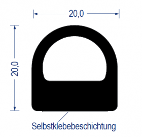 epdm moosgummi, halbrundprofil mit hohlkammer, 20x20mm, schwarz, selbstklebend, artikelnummer 2110010SK