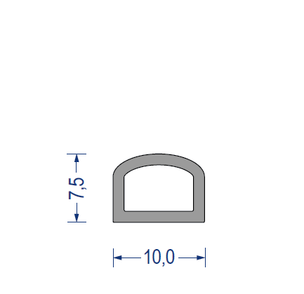 EPDM Moosgummi-Halbrundprofil mit Hohlkammer, 10x7,5 mm, grau