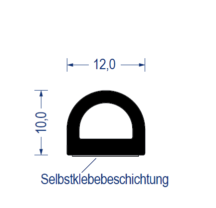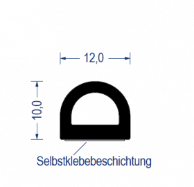 EPDM Moosgummi-Halbrundprofil mit Hohlkammer, 12x10 mm, schwarz, *selbstklebend