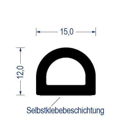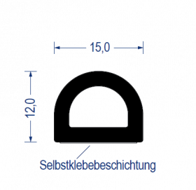 EPDM Moosgummi-Halbrundprofil mit Hohlkammer, 15x12 mm, schwarz, *selbstklebend