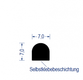 Sortiment Profile Moosgummi Profile │ geschäumt mit Haut Moosgummi Halbrundprofil ohne Hohlkammer EPDM Moosgummi-Halbrundprofil, 7x7 mm, schwarz, selbstklebend