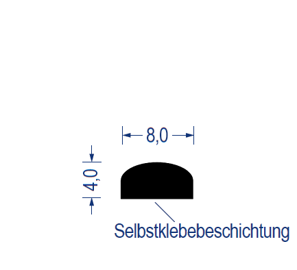 Sortiment Profile Moosgummi Profile │ geschäumt mit Haut Moosgummi Halbrundprofil ohne Hohlkammer EPDM Moosgummi-Halbrundprofil, 8x4 mm, schwarz, selbstklebend