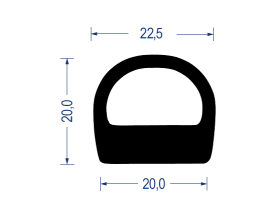 epdm moosgummi, halbrundprofil mit hohlkammer, 20x22,5mm, schwarz, artikelnummer 2110043