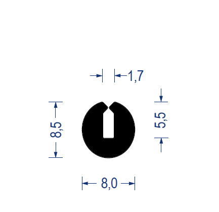 epdm, moosgummi, u-rundprofil, durchmesser Ø 8x8,5 mm, schlitz-klemmbereich 1,7mm, schwarz, artikelnummer 2120002