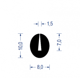 epdm, moosgummi, u-rundprofil, durchmesser Ø 8x10 mm, schlitz-klemmbereich 1,5mm, schwarz, artikelnummer 2120003