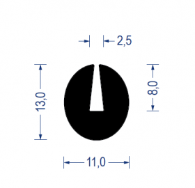 epdm, moosgummi, u-rundprofil, durchmesser 11x13 mm, schlitz-klemmbereich 2,5mm, schwarz, artikelnummer 2120009
