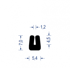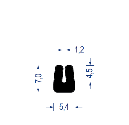 EPDM Moosgummi U-Profil, KB 1,2 mm, 5,4 x 7,0 mm, schwarz