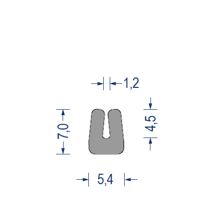 EPDM Moosgummi U-Profil, KB 1,2 mm, 5,4 x 7,0 mm, grau