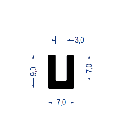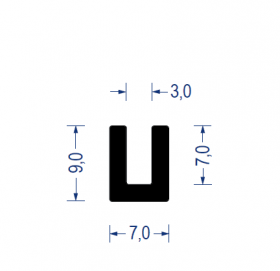 EPDM Moosgummi U-Profil, KB 3 mm, 7 x 9 mm, schwarz