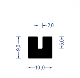 EPDM Moosgummi U-Profil, KB 2 mm, 10 x 9 mm, schwarz