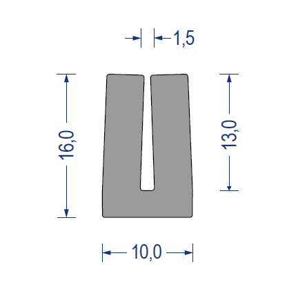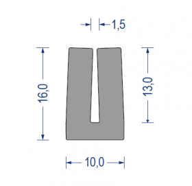 EPDM Moosgummi U-Profil, KB 1,5 mm, 10 x 16 mm, grau