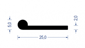 epdm, moosgummi-notenprofil, 5/25mm, fahne 2mm,schwarz, artikelnummer 2140002