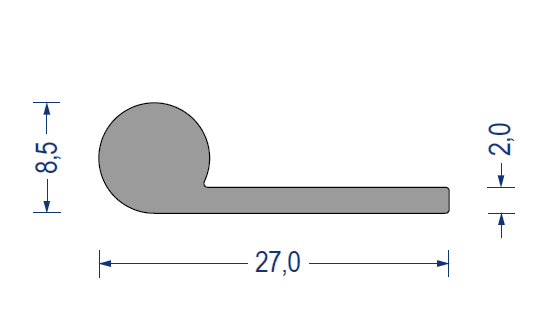epdm, moosgummi-fahnenprofil, 8,5/27mm, fahne 2mm, grau, artikelnummer 2140004