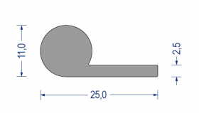 epdm, moosgummi-kederprofil, 11/25mm, fahne 2,5mm, grau, artikelnummer 2140009