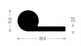 epdm, moosgummi-fahnenprofil, 11/25mm, fahne 2,5mm,schwarz, artikelnummer 2140010
