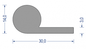 epdm, moosgummi-notenprofil, 14/30mm, fahne 3mm, grau, artikelnummer 2140011