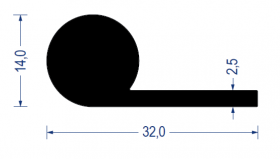 EPDM- Moosgummi-Fahnenprofil, Moosgummi-Notenprofil, Moosgummi-Kederprofil, 14/32 mm, Fahne 2,5 mm, schwarz