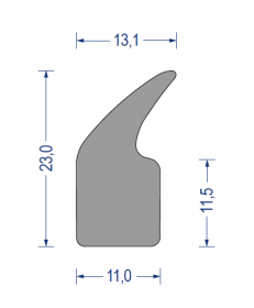 epdm, moosgummi-zargenprofil, 11x23mm, grau, artikelnummer 2150002