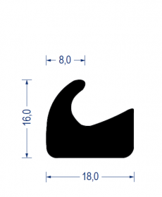 epdm, moosgummi-zargenprofil, 18x16mm, schwarz, artikelnummer 2150005