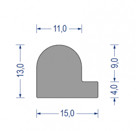 epdm, moosgummi-zargen-halbrund-profil, 15x13mm, grau, artikelnummer 2150011