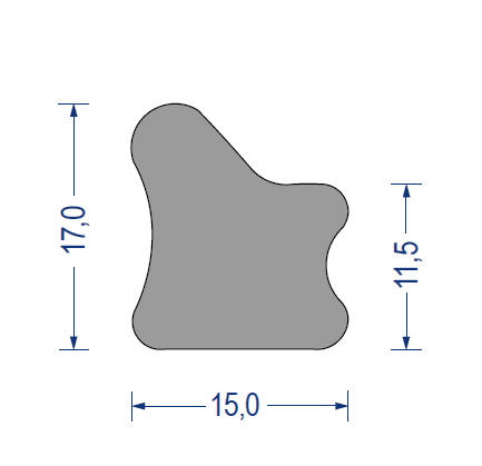 epdm, moosgummi-zargenprofil, 15x17x11,5mm, grau, artikelnummer 2150015